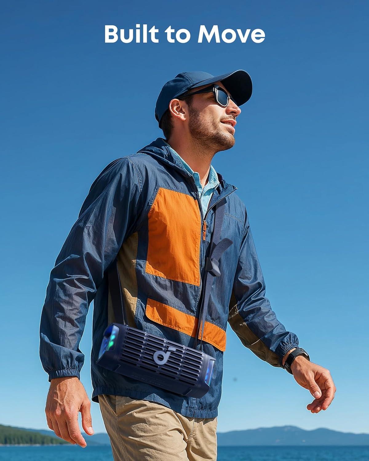 soundcore Boom 2 By Anker, Outdoor Speaker, 80W, Subwoofer, BassUp 2.0, 24H Playtime, IPX7 Waterproof, Floatable, RGB Lights, USB-C, Custom EQ, Bluetooth 5.3, Portable for Camping, Beach, and Backyard(Blue)