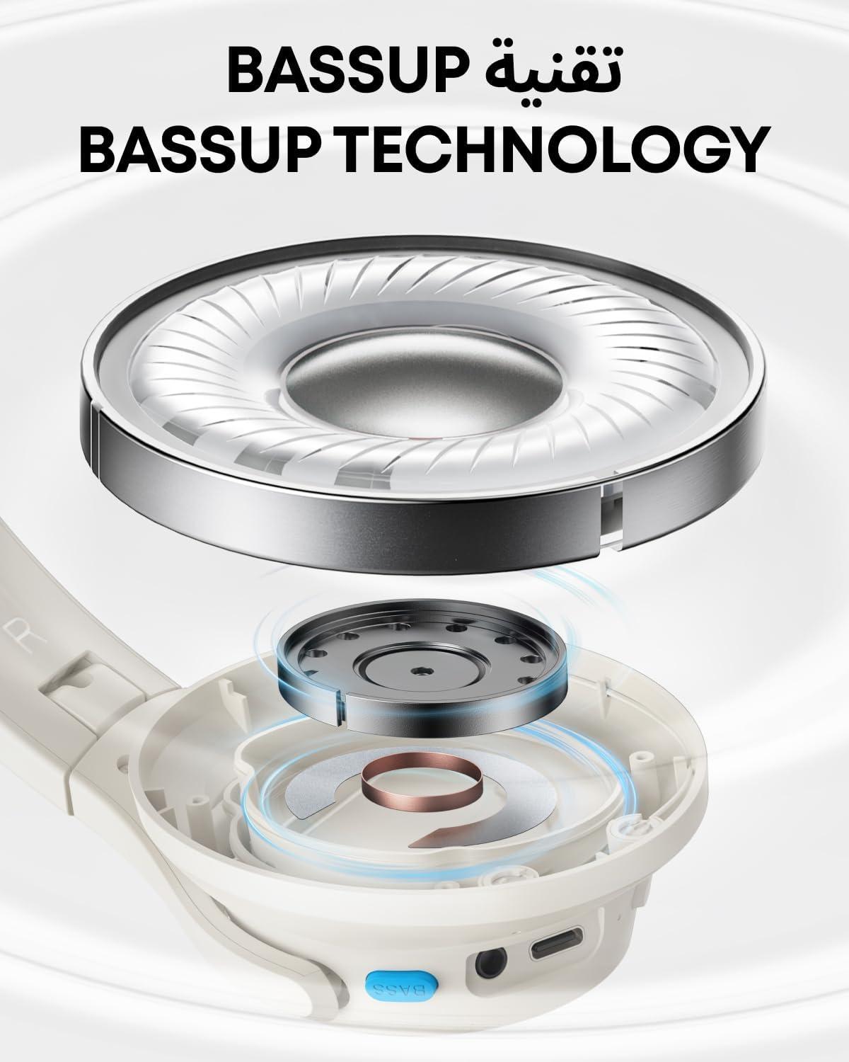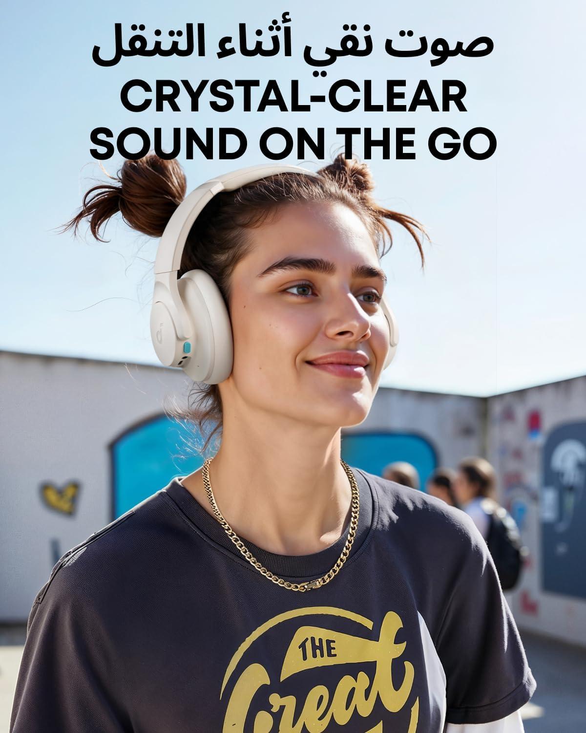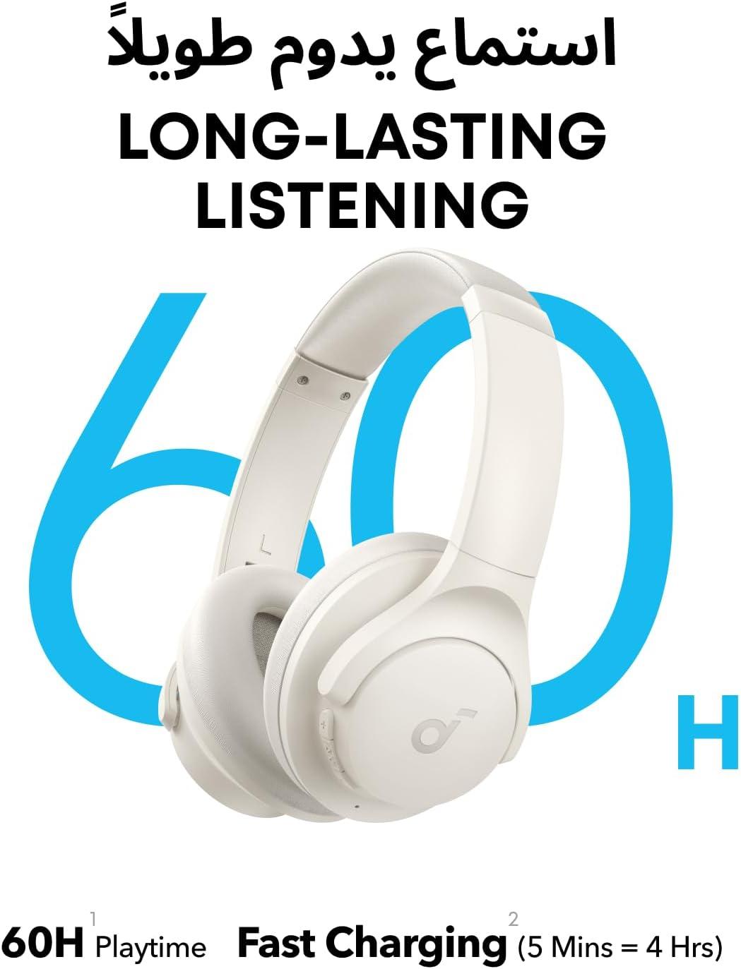 Soundcore Q11i Wireless Over-Ear Bluetooth Headphones by Anker, Deep Bass, 60H Playtime, Hi-Res Audio, Detachable Ear Cushions, Multipoint Connection(Cream White)