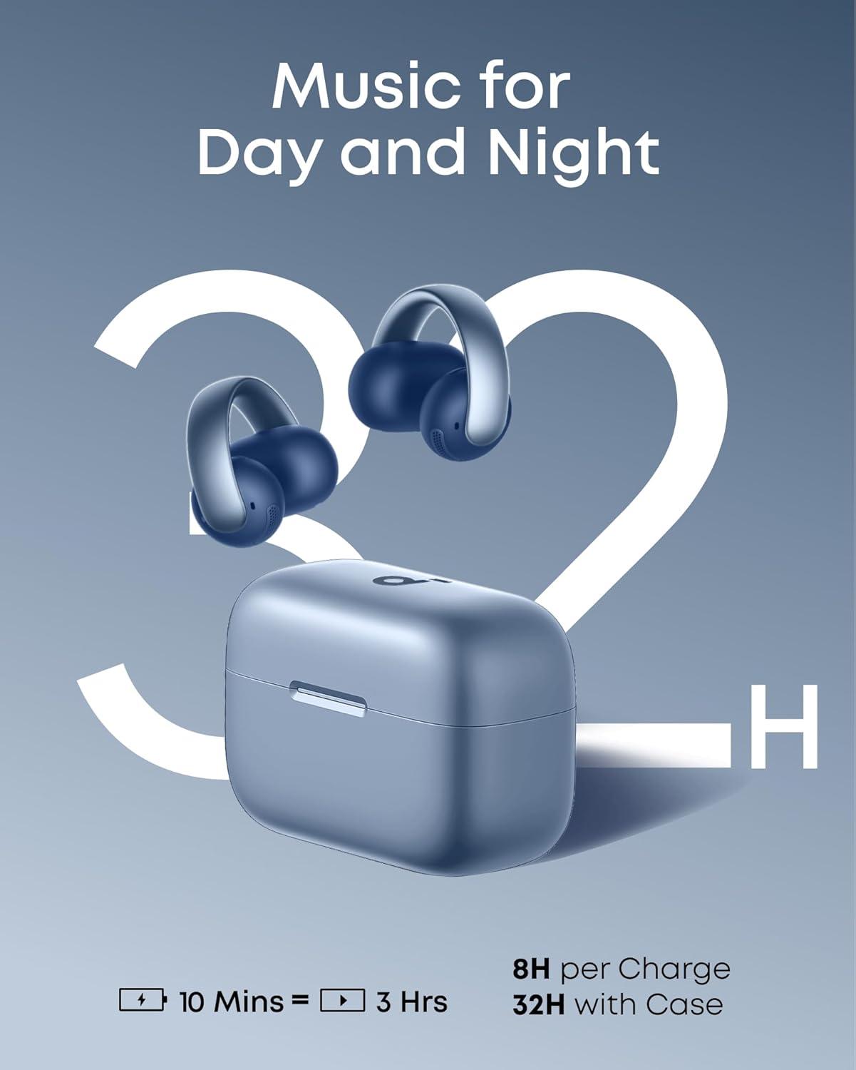 Open-Ear Design, Ultra-Comfort: soundcore AeroClip open-ear clip-on earbuds rest gently on your ears without entering the canal, offering all-day comfort— ideal for a one-hour run or an eight-hour workday.