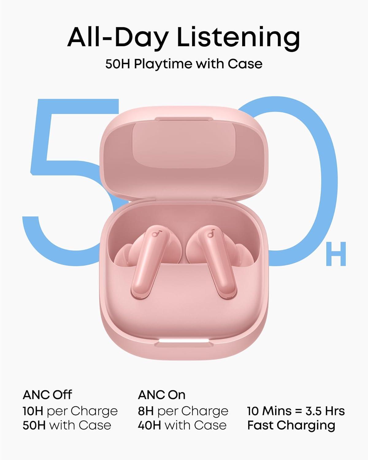 Soundcore P31i by Anker, Real-Time Adaptive Noise Cancelling, Hi-Res Sound, Translation Earbuds, 50H Playtime, Wireless Earbuds, Bluetooth Earphones, Spatial Audio, Fast Charging, IP55(Pink)